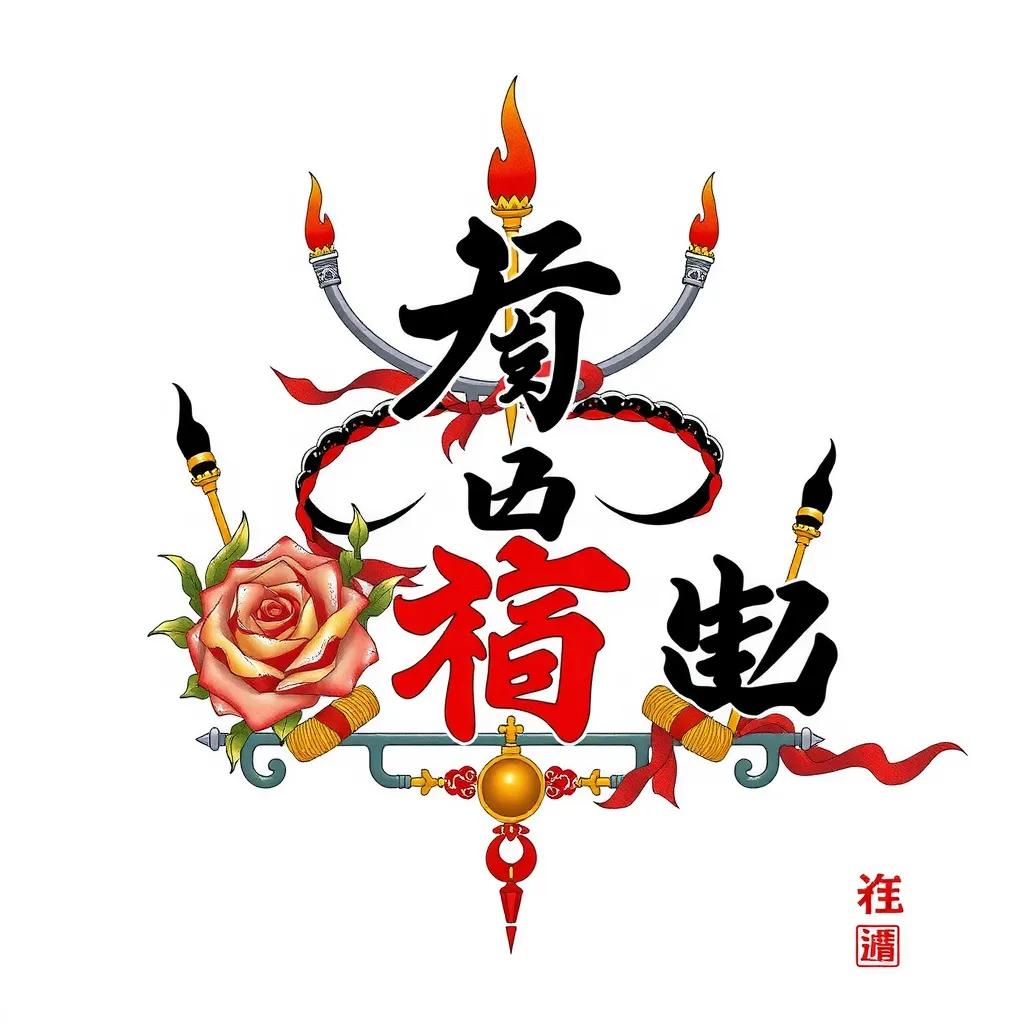 Necesito un diseño de tatuaje que combine jiu jitsu y boxeo femenino en blanco y negro, sin figuras humanas. Quiero que ambos deportes tengan igualdad de importancia en el diseño. Me gustaría que incluyera elementos como un cinturón que envuelva el brazo, guantes de boxeo y un rosal. El diseño debe ser bonito, original y transmitir la idea de igualdad y fuerza."